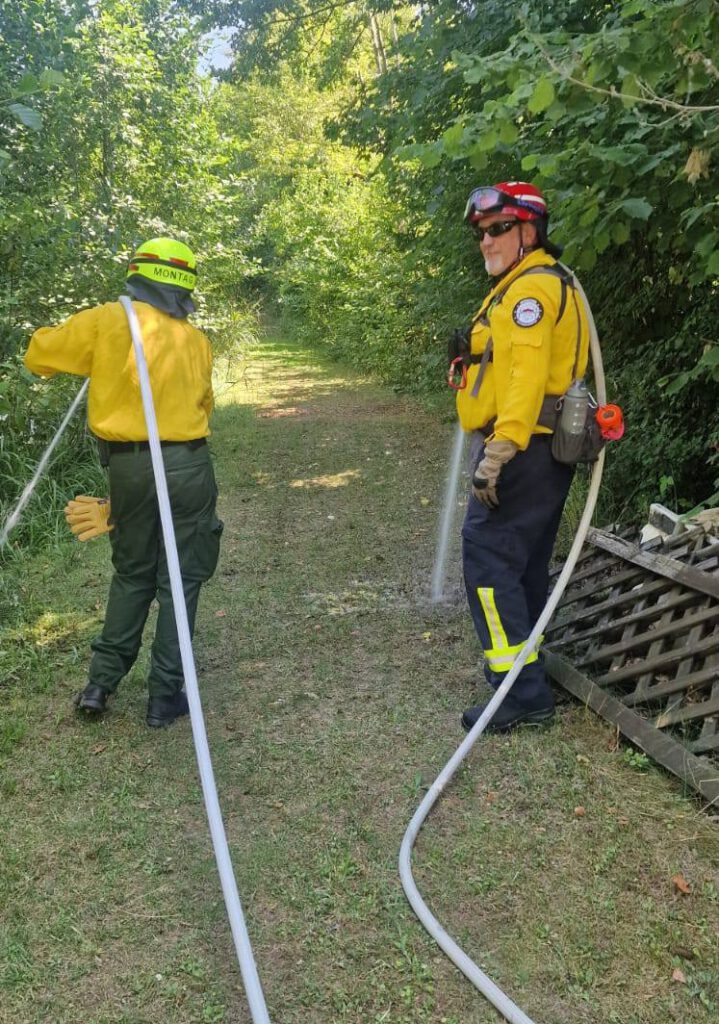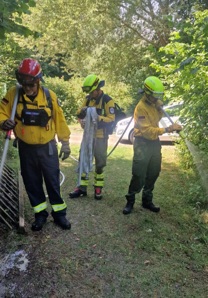 Hierbei wurde das progressive Schlauchverlegen, sowie das ablöschen eines Feuersaumes, trainiert.